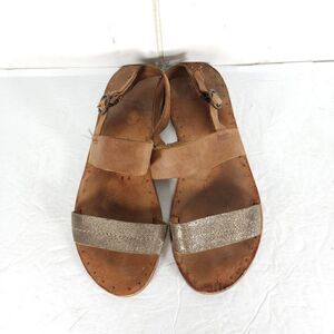 Frye Women's Ally 2 Band US8,5M Distresd Leather Brown Bronze Slingback Sandals