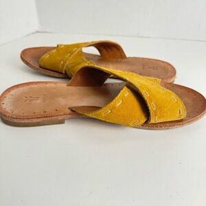 Frye Avery Pickstitch Mustard Yellow Slides Sandals