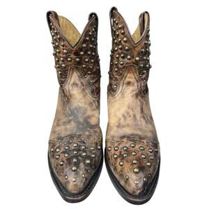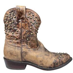 Frye Women’s Billy Brown Leather Studded Western Ankle Boots Size US 8 B