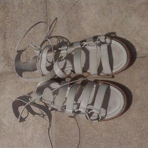 Frye Women's Blair Side Ghillie Gladiator Sandal White Size 8 Preowned Boho Bohemian Cotragecore Learher