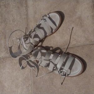 Frye Women's Blair Side Ghillie Gladiator Strappy Sandals White Size 8
