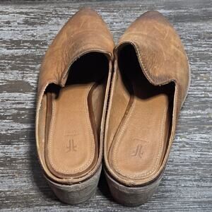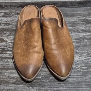 Frye Women's Brown Leather Slip On Western Style Mule Size 9 M. Pre owned-gently used.