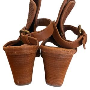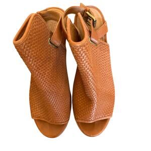 Frye Women's Brown Leather Woven Shield Peep Toe Slingback Heel - Size 10