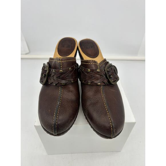 Frye Women's Brown Terri Woven Leather Gore Round Toe Mules Shoes Size 8M