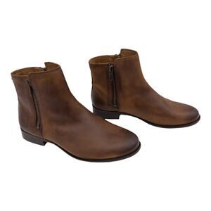 Frye Women's Carly Leather Double Zip Leather Ankle Boots 6.5 Cognac Brown