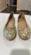 Chic Frye flats with a gold and brown pattern. Perfect blend of style and comfort.