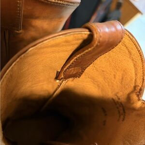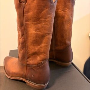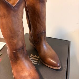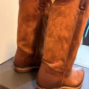 Elegant tan leather boots with a sleek design. Perfect for versatile styling.