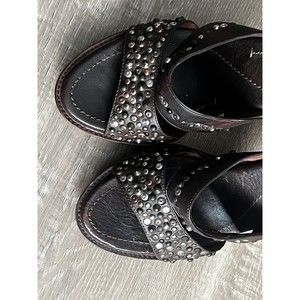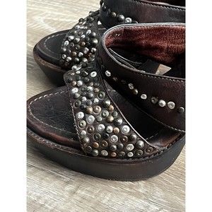 Frye Womens Joy Vintage Brown Beaded Open Toe Slip On Slide Sandals US 9.5 B