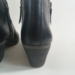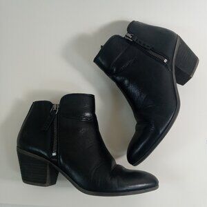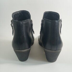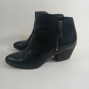 Frye Women's Black Leather Ankle Booties Side Zippers Block Heel Size 8.5