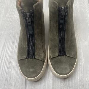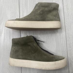 Frye Women's Lena Olive Green Zip Oiled Suede High Top Sneakers Size 5.5