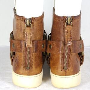 Frye Women’s Lena US6,5 Cognac Brown Leather Back Zip Harness Ankle Boots