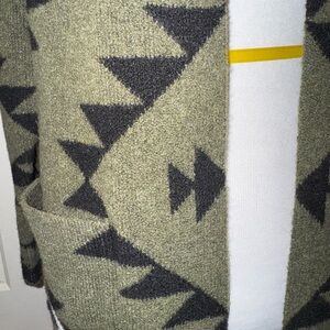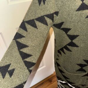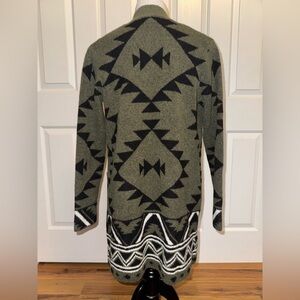 Frye Women’s Open Front Long Cardigan Sweater XS Olive Green Black Aztec Tribal