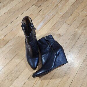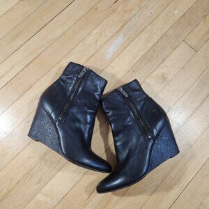 Frye Womens Regina Seamless Ankle Black Leather Wedge Zipper Bootie