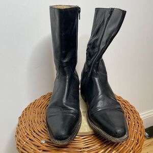 Frye Women's Rush Boot Size 7 Pointed Black Distress Leather Western Block Heel