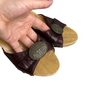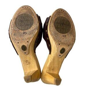These sandals offer a blend of vintage charm and modern style. Featuring wooden soles, leather uppers, and brass detailing, they are both stylish and durable.