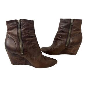 Frye Womens Size 9.5 Brown Leather Regina Seam Wedge Ankle Boots Bootie