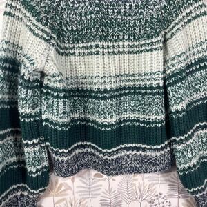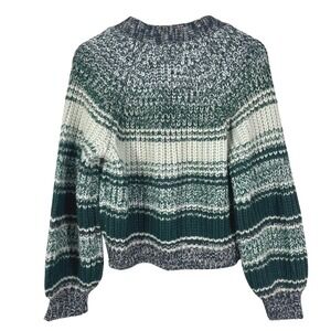 Frye Women's Striped Knit Cardigan Sweater Green White Navy Acrylic Size S