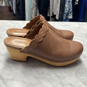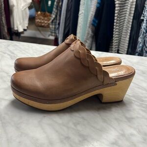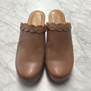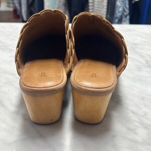 Frye Women's Tan 1" Platform Nailhead Detail Braided Paddle Mille Leather Clog 7