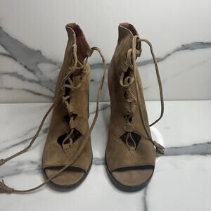 Frye | Women's Tan Suede Gabby Ghillie Boots Sz 7 Peep Toe Lace-Up Festival Boho