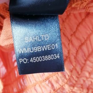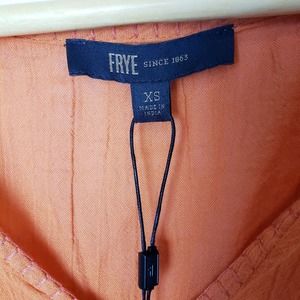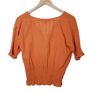 Frye Womens Top Size XS Split Neck Smocked Waist Short Sleeves in Orange Rust