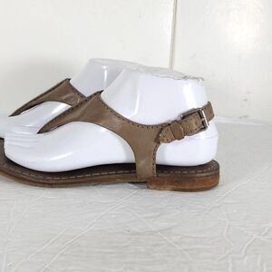 Frye Women's US6,5M Brown Leather Flat Buckle Thong Slingback Sandals Shoes .