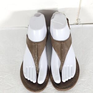 Frye Women's US6,5M Brown Leather Flat Buckle Thong Slingback Sandals Shoes