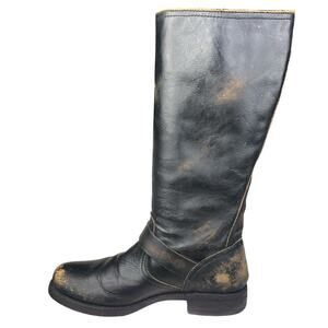 Frye Women’s Veronica Slouch Distressed Black Leather Moto Boot Size US 8