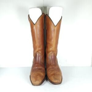 Frye Women's Vtg US6B Brown Leather Pull On Mid Calf Western Boots Made in USA 7085