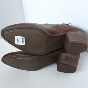 Brand new store display shoes no box. Frye women ankle heel boot size 9M brown color leather. Pet and smoke free home.