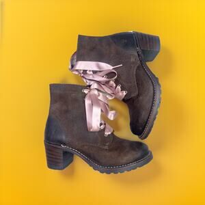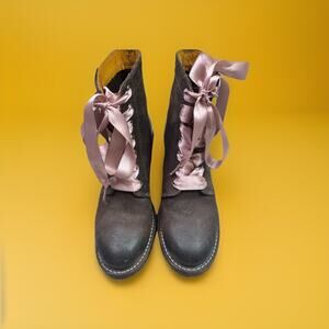 Frye Y2k Combat Lace-Up Boot, Sabrina 6G Brown w/ Pink Ribbon Laces Size 8