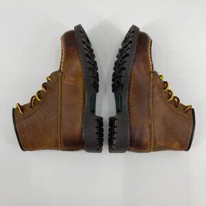 Frye Youth 8.5 Dakota Brown Leather Moc Toe Mid Lace Up Boots Preppy Lug Soles