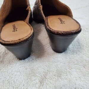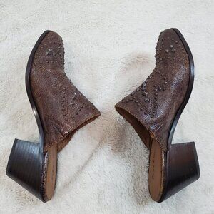 Frye and Co Chocolate Brown Distressed Leather Studded Heel Mules Clog Women 7.5