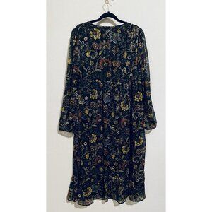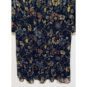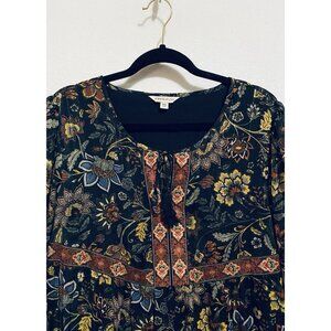 Frye and Co Dress Womens XXL Black Floral Maxi Tassel Tie Neck Boho Peasant