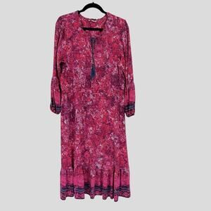 Frye and Co Dress XL Midi Floral Tassel Rayon Western Peasant Boho Canyon