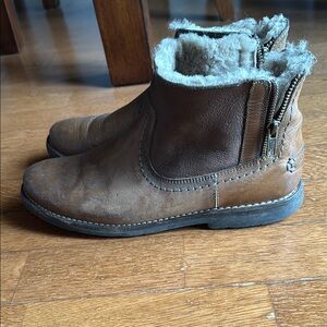 Suede uppers, side zip, man made soles