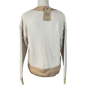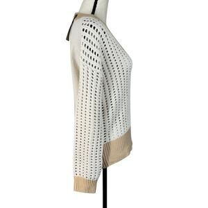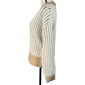 Frye and Co Small Sweater V-Neck Open Knit Pullover Long Sleeve Stretch Oatmeal