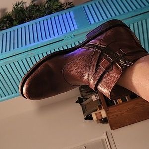 These are a fabulous pair of reddish brown side zip leather Frye booties