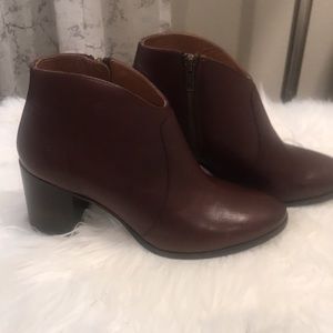 Brand new never worn Frye leather booties. Beautiful dark brown leather (pictures do not do justice:)) very comfortable and fits true to size but enough room for thicker socks in winter.
