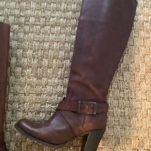 Julia riding boots. Cognac. These boots are knee-high and wider at the top then the bottom. I wore them about 10 times but no longer have a need for them. The leather and heels are in good shape but needs some cleaning and conditioning.