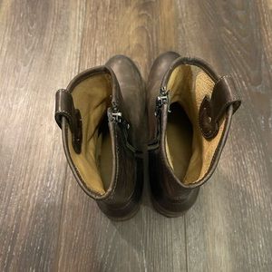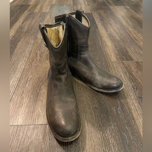 Short (8 inch) Brown Frye boots. 1 inch heel. Worn a few times and in great condition.