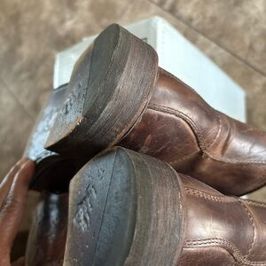 Frye boots are benchcrafted from the finest full-grain leather uppers and genuine leather soles. Men’s gently loved boots.