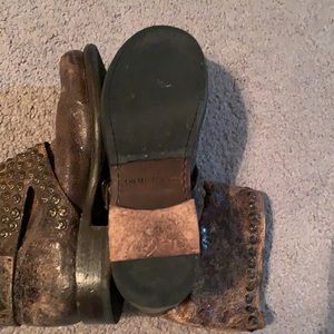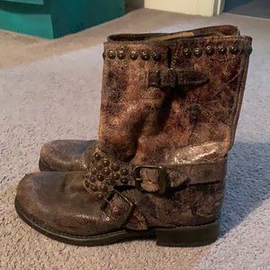 I LOVE these Frye boots! The distressed leather and antique brass embellishments set off any outfit! Super comfortable! Looking for a good home🥰
