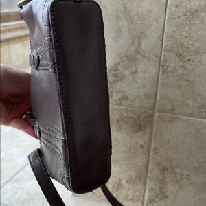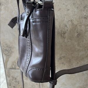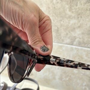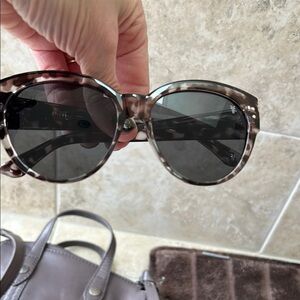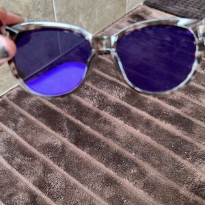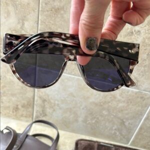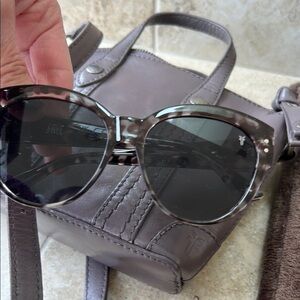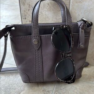 Both are gently preloved glasses are not scratched. Crossbody strap can be adjusted color is between gray and purple some may say clay not sure but both are adorable. Bag measures 7x7 approximately.