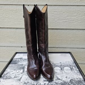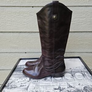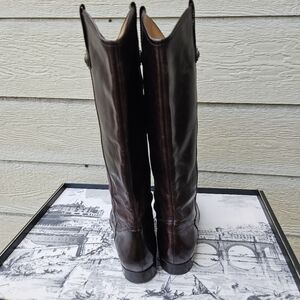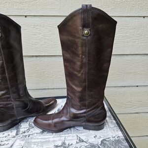Frye dark brown leather Cindy pull on mid-calf riding boots size 7.5