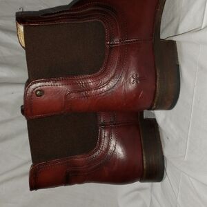 Frye mahogany leather slide on ankle boots euc
