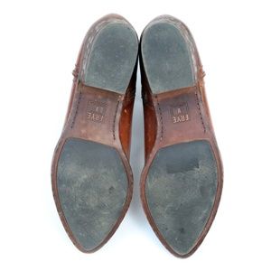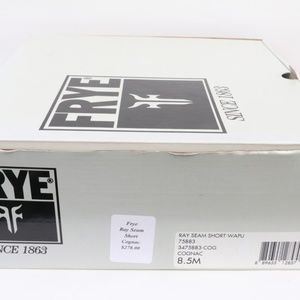 New Ray seam short boots by Frye. All leather - tooled heels - slight distressing - side zippers - cognac color. Did not wear b/c too small. Box included. Enjoy them for me!