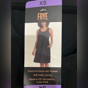 Frye teared knit dress with pockets, soft cotton jersey. XS NWT black
