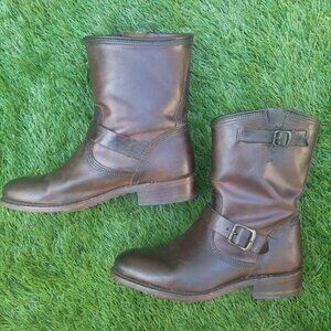 Frye veronica Brown Leather Mid-Calf Engineer Boots Size 6