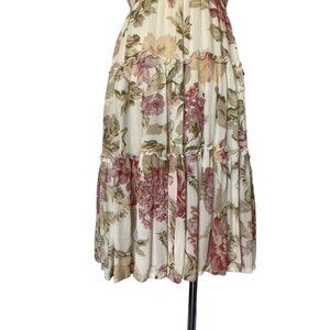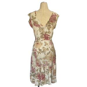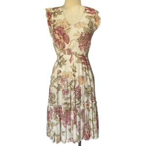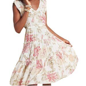 Frye x Anthropologie Luna Tiered Dress with flutter sleeves, V-neck, ruffled tiers, elastic waistband and pullover styling. Vintage inspired design. Good preowned condition. Please see pictures for more details and measurements.