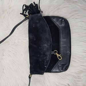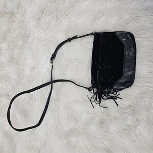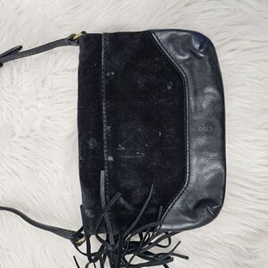 Frye Black Crossbody Purse Satchel Tassel Small Shoulder Bag Leather Suede